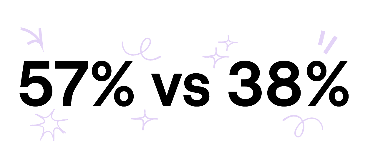 57% of fully remote workers rate their work-life balance as ‘above average’ compared to 38% of in-office workers and 44% of hybrid workers