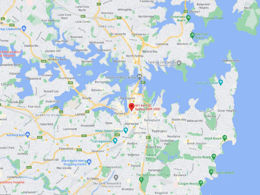 Map view of Sydney, Australia, highlighting a central location